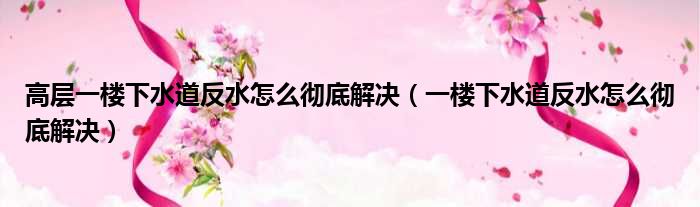 高层一楼下水道反水怎么彻底解决(一楼下水道反水怎么彻底解决)