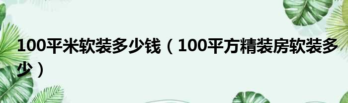 100平精装房软装预算大概在5到15万。具体费用可参考:一、窗帘,床上用品,地毯,床垫等,控制在1万;二、家具种类多,有不同档次,预算在3到5万,比如有床,衣柜,橱柜,浴室柜,沙发等;三、电器,空调,冰箱,电视机,热水器,加上智能化产品,预算在3到5万;四、灯饰,结合各个房间需求,1到3万之间。