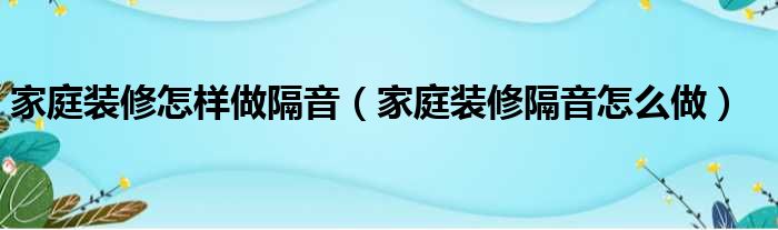 家庭装修怎样做隔音(家庭装修隔音怎么做)