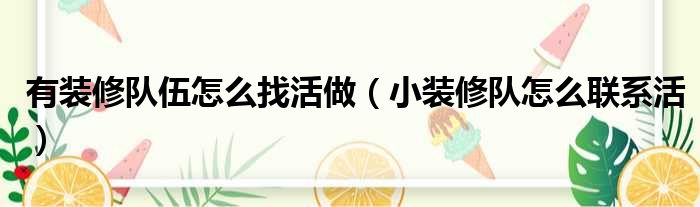 有装修队伍怎么找活做(小装修队怎么联系活)