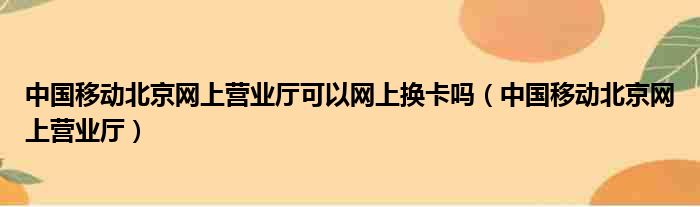 中国移动北京网上营业厅可以网上换卡吗(中国移动北京网上营业厅)