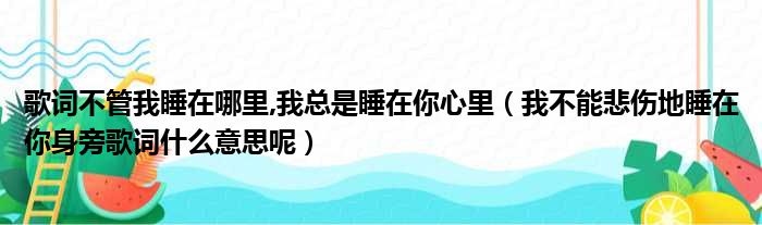 导读 大家好,今天小六子来为大家解答以下的问题,关于歌词不管我睡在哪里,我总是睡在你心里,我不能悲伤地睡在你身旁歌词什么意思呢这个很多人还