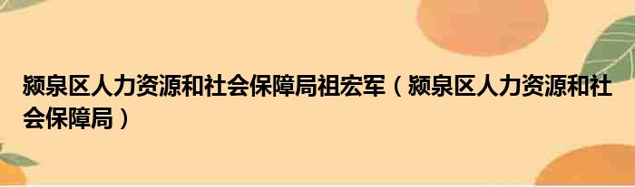 导读 大家好,今天小六子来为大家解答以下的问题,关于颍泉区人力资源和社会保障局祖宏军,颍泉区人力资源和社会保障局这个很多人还不知道,现在