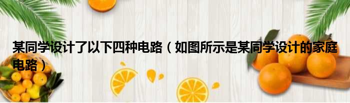 导读 大家好,今天小六子来为大家解答以下的问题,关于某同学设计了以下四种电路,如图所示是某同学设计的家庭电路这个很多人还不知道,现在让我