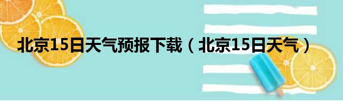 北京15日天气预报下载(北京15日天气)