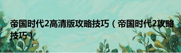 帝国时代2高清版攻略技巧(帝国时代2攻略技巧)