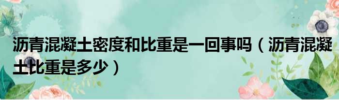 导读 大家好,今天小六子来为大家解答以下的问题,关于沥青混凝土密度和比重是一回事吗,沥青混凝土比重是多少这个很多人还不知道,现在让我们一