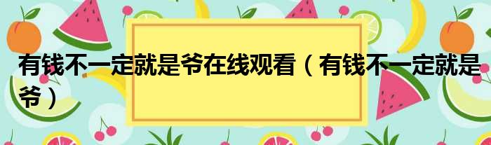 导读 大家好,今天小六子来为大家解答以下的问题,关于有钱不一定就是爷在线观看,有钱不一定就是爷这个很多人还不知道,现在让我们一起来看看吧