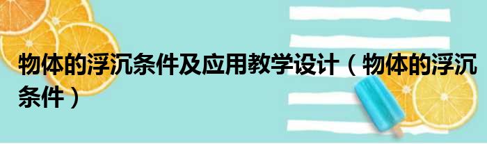 导读 大家好,今天小六子来为大家解答以下的问题,关于物体的浮沉条件及应用教学设计,物体的浮沉条件这个很多人还不知道,现在让我们一起来看看