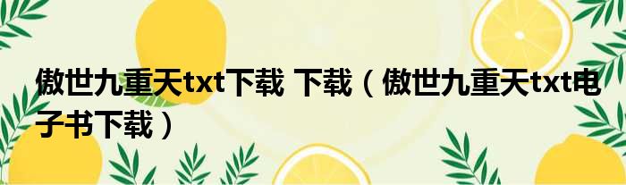 导读 大家好,今天小六子来为大家解答以下的问题,关于傲世九重天txt下载 下载,傲世九重天txt电子书下载这个很多人还不知道,现在让我们一起来