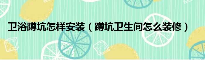卫浴蹲坑怎样安装(蹲坑卫生间怎么装修)