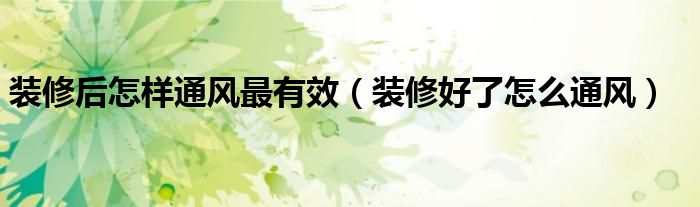 大家好,啊来为大家解答以上的问题。装修后怎样通风最有效,装修好了怎么通风这个很多人还不知道,现在让我们一起来看看吧!