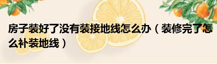房子装好了没有装接地线怎么办(装修完了怎么补装地线)