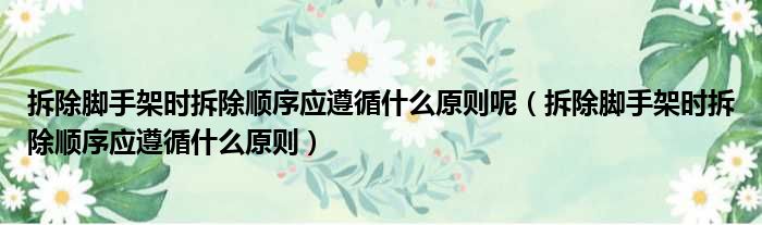 拆除脚手架时拆除顺序应遵循什么原则呢(拆除脚手架时拆除顺序应遵循什么原则)