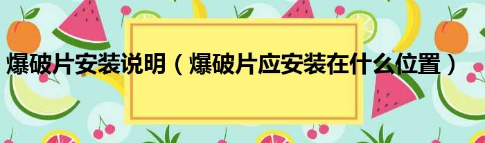 大家好,啊来为大家解答以上的问题。爆破片安装说明,爆破片应安装在什么位置这个很多人还不知道,现在让我们一起来看看吧!