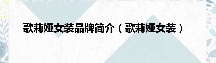 导读 大家好,今天小六子来为大家解答以下的问题,关于歌莉娅女装品牌简介,歌莉娅女装这个很多人还不知道,现在让我们一起来看看吧!1、歌莉娅女