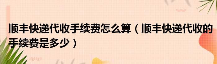 导读 大家好,今天小六子来为大家解答以下的问题,关于顺丰快递代收手续费怎么算,顺丰快递代收的手续费是多少这个很多人还不知道,现在让我们一