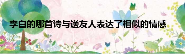 大家好,今天小六子来为大家解答以下的问题,关于李白的哪首诗与送友人表达了相似的情感这个很多人还不知道,现在让我们一起来看看吧!