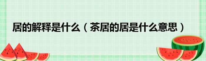 大家好,今天小六子来为大家解答以下的问题,关于居的解释是什么,茶居的居是什么意思这个很多人还不知道,现在让我们一起来看看吧!