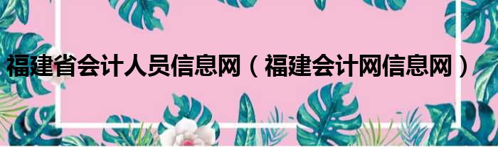 导读 大家好,今天小六子来为大家解答以下的问题,关于福建省会计人员信息网,福建会计网信息网这个很多人还不知道,现在让我们一起来看看吧!1、