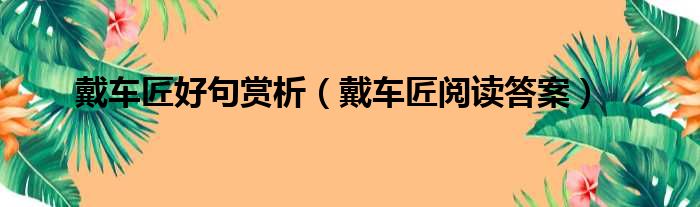 大家好,今天小六子来为大家解答以下的问题,关于戴车匠好句赏析,戴车匠阅读答案这个很多人还不知道,现在让我们一起来看看吧!