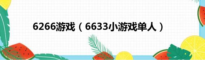 大家好,今天小六子来为大家解答以下的问题,关于6266游戏,6633小游戏单人这个很多人还不知道,现在让我们一起来看看吧!