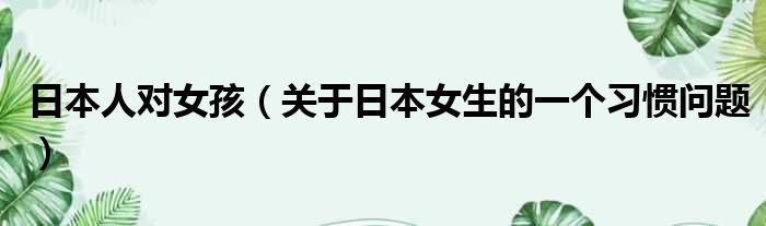 导读 大家好,今天小六子来为大家解答以下的问题,关于日本人对女孩,关于日本女生的一个习惯问题这个很多人还不知道,现在让我们一起来看看吧!1