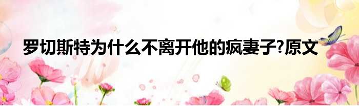 大家好,今天小六子来为大家解答以下的问题,关于罗切斯特为什么不离开他的疯妻子?原文这个很多人还不知道,现在让我们一起来看看吧!