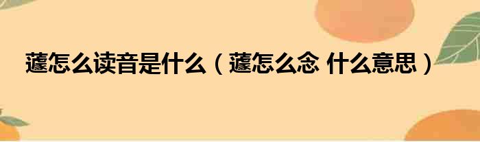 蘧怎么读音是什么(蘧怎么念 什么意思)