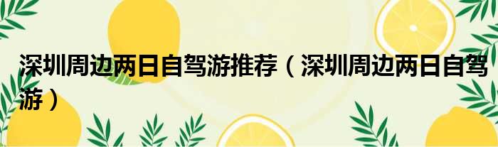 深圳周边两日自驾游推荐(深圳周边两日自驾游)