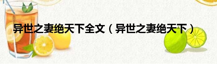 大家好,今天小六子来为大家解答以下的问题,关于异世之妻绝天下全文,异世之妻绝天下这个很多人还不知道,现在让我们一起来看看吧!