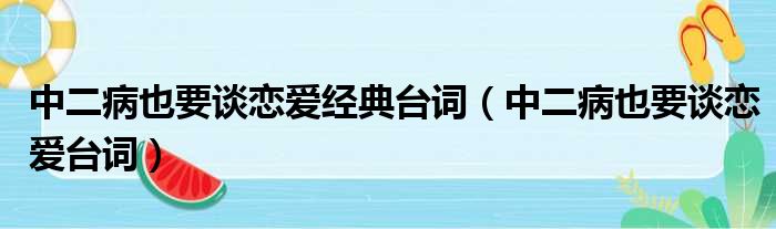 导读 大家好,今天小六子来为大家解答以下的问题,关于中二病也要谈恋爱经典台词,中二病也要谈恋爱台词这个很多人还不知道,现在让我们一起来看