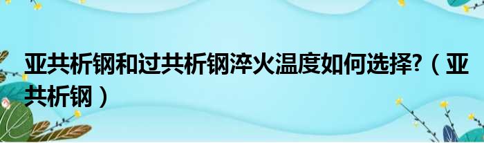 导读 大家好,今天小六子来为大家解答以下的问题,关于亚共析钢和过共析钢淬火温度如何选择?,亚共析钢这个很多人还不知道,现在让我们一起来看看