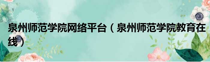 导读 大家好,今天小六子来为大家解答以下的问题,关于泉州师范学院网络平台,泉州师范学院教育在线这个很多人还不知道,现在让我们一起来看看吧