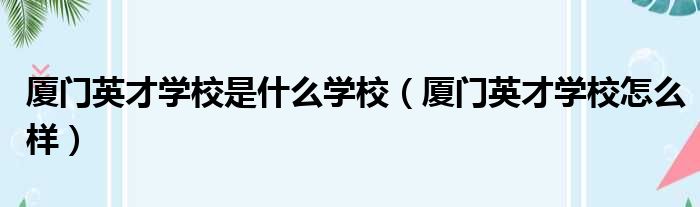 厦门英才学校是什么学校(厦门英才学校怎么样)