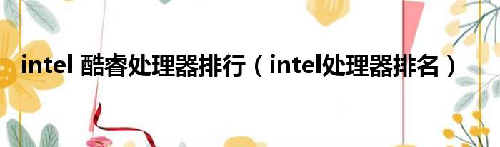 intel 酷睿处理器排行(intel处理器排名)