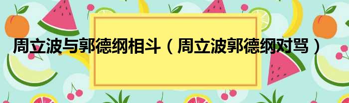 周立波与郭德纲相斗(周立波郭德纲对骂)