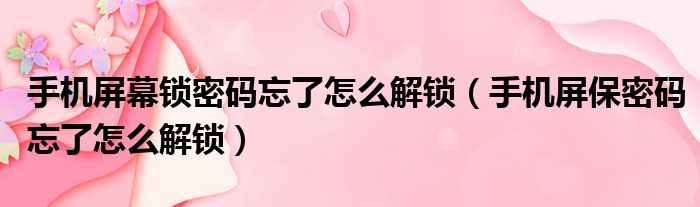 手机屏幕锁密码忘了怎么解锁(手机屏保密码忘了怎么解锁)