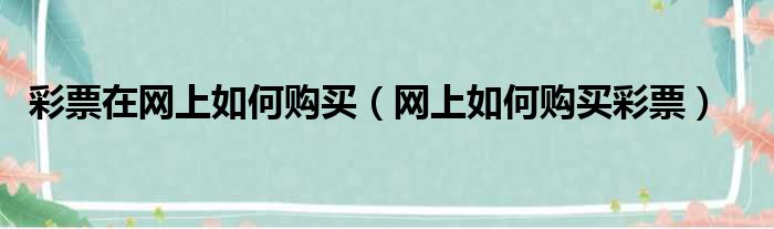 彩票在网上如何购买,网上如何购买彩票很多人还不知道,乐儿来为大家解答以上问题,现在让我们一起来看看吧!