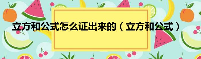 导读 大家好,今天小六子来为大家解答以下的问题,关于立方和公式怎么证出来的,立方和公式这个很多人还不知道,现在让我们一起来看看吧!1、长方