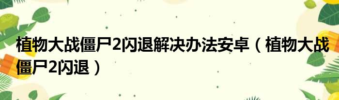 植物大战僵尸2闪退解决办法安卓(植物大战僵尸2闪退)