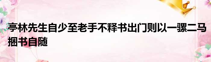大家好,今天小六子来为大家解答以下的问题,关于亭林先生自少至老手不释书出门则以一骡二马捆书自随这个很多人还不知道,现在让我们一起来看看吧!