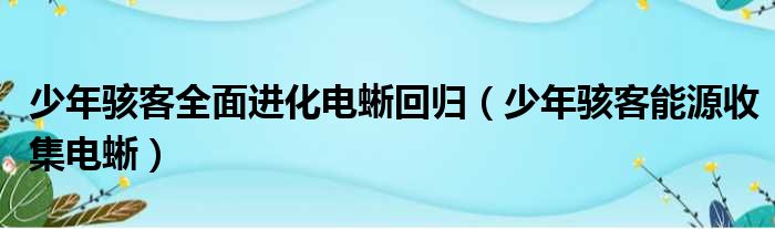导读 大家好,今天小六子来为大家解答以下的问题,关于少年骇客全面进化电蜥回归,少年骇客能源收集电蜥这个很多人还不知道,现在让我们一起来看