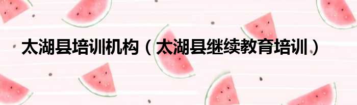 大家好,今天小六子来为大家解答以下的问题,关于太湖县培训机构,太湖县继续教育培训这个很多人还不知道,现在让我们一起来看看吧!