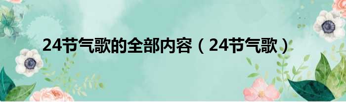 大家好,今天小六子来为大家解答以下的问题,关于24节气歌的全部内容,24节气歌这个很多人还不知道,现在让我们一起来看看吧!