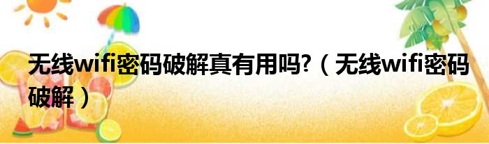 无线wifi密码破解真有用吗?(无线wifi密码破解)