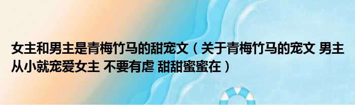 女主和男主是青梅竹马的甜宠文(关于青梅竹马的宠文 男主从小就宠爱女主 不要有虐 甜甜蜜蜜在)