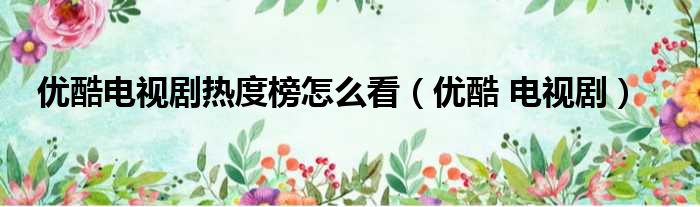 优酷电视剧热度榜怎么看(优酷 电视剧)