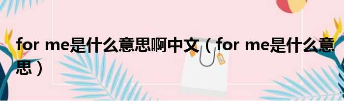 导读 大家好,今天小六子来为大家解答以下的问题,关于for me是什么意思啊中文,for me是什么意思这个很多人还不知道,现在让我们一起来看看吧