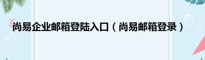 尚易企业邮箱登陆入口(尚易邮箱登录)